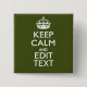 Votre Keep Calm vous dit sur une belle décoration personnalisée couleur vert olive. Un style personnalisé Keep Calm en disant sur un cadeau de nature. Essayez humour ou fantaisie sur vos mots créatifs sur deux lignes de texte modifiables. N'oubliez pas d'utiliser les lettres CAPITAL pour obtenir les meilleurs résultats. Utilisez le lien "Demandez à ce concepteur" pour nous contacter avec vos demandes de design spécial ou pour obtenir de l'aide sur vos besoins de personnalisation.