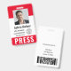 Personnalisez ces badges de laissez-passer verticaux avec une photo et le nom d'un employé, ainsi que trois champs de texte personnalisés pour le nom de la société de médias, le titre ou le rôle et le numéro d'identification ou les dates valides, ainsi que le logo de la société de médias. Le mot PRESS apparaît en bas en lettres blanches grasses pour une identification facile. Personnalisez avec un code-barres au verso si nécessaire, ainsi que des informations de retour ou d'autres détails.