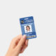 badge personnel médical vertical personnalisable simple et moderne avec logo personnalisé, code à barres, photo, nom et adresse. Créé pour le centre médical, l'hôpital et l'établissement de santé. Couleurs principales de ce modèle professionnel : bleu et blanc.