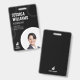 Carte d'identité de l'employé avec photo personnelle. Le dessin montre la photographie des employés dans le coin inférieur droit, ainsi que le nom de l'employé en caractères blancs gras. De plus, il inclut le métier des employés et le numéro d'identification de badge. Le badge personnel moderne peut être personnalisé avec le logo et le nom de votre entreprise. Ajoutez des informations supplémentaires, telles qu'un code à barres ou les coordonnées de l'employé au dos si vous le souhaitez. Les couleurs peuvent être personnalisées pour correspondre au jeu de couleurs de votre entreprise. Couleur : Noir