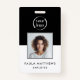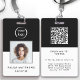 Un logo professionnel de l'entreprise Badge avec photo, nom et titre de l'employé sur le devant avec logo de votre entreprise. Le dos de l'insigne a un modèle pour votre site web de l'entreprise code QR et des informations supplémentaires de l'entreprise comme souhaité. Tout le texte peut être modifié selon vos préférences. Le design noir et blanc populaire est attrayant et professionnel.