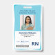 Personnalisez ce badge photo d'infirmière de l'hôpital en ajoutant votre propre photo, nom, nom de l'hôpital ou de l'établissement médical, titre, désignation avec initiales, numéro d'identité, code-barres, date de validité et informations au verso. Le design simple avec une bordure bleue brillante et des bords de photo incurvés permet une personnalisation facile et un style professionnel parfait pour les prestataires de soins médicaux et de santé.