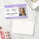 Personnalisez facilement et rapidement ce badge d'identité photo avec une photo, un logo, un nom, un titre et un numéro d'employé. Appuyez simplement sur le bouton de personnalisation pour réorganiser et formater davantage le style et l'emplacement du texte. (c) The Happy Cat Studio.