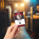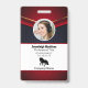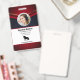 Badge d'identification des employés de la société avec des modèles créés pour vous. Le fond est un moderne abstrait en gris rouge, blanc et marine.