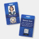 Ajoutez une touche d'éclat à votre professionnalisme le jour de l'événement avec ce badge d'identification d'employé élégant, conçu avec des paillettes fausses bleues vives et des accents de bleu marine riche. Idéal pour le personnel de mariage, les organisateurs, les coordinateurs ou les équipes de la mariée, ce badge comporte une photo, un logo et un modèle de nom sur le devant. Le dos comprend un espace pour les codes QR ou les codes-barres, ainsi que des coordonnées personnalisables. Parfait pour le personnel d'événement qui veut avoir l'air soigné et inoubliable.