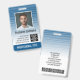 Bleu et Blanc - Un design commercial moderne qui met en valeur les logos de votre bureau et le nom de l'employé. Ce design de bureau tendance comprend également un numéro d'identification de badge, une date d'expiration et le titre d'infirmière ou autre.