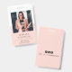 Un badge minimaliste moderne pour un consultant en affaires ou un autre titre professionnel. Une typographie simple et élégante pour votre nom et titre avec un arrière - plan rose pêche et blanc deux tome. Remplacez cet exemple de photo par votre propre photo professionnelle. Ajoutez votre poignée de médias sociaux à l'arrière du badge.