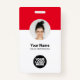 Personnalisez facilement ce badge personnalisé de nom d'employé minimaliste d'entreprise avec photo, code Qr de numérisation ou code barre de numérisation et logo d'entreprise. Un design d'entreprise simple avec photo ronde, en rouge et blanc entièrement personnalisable en tailles avant et arrière, sans-serif polices de base et moderne et un look professionnel et clair. Disponible avec cordon, clip métallique ou avec rétractable. Pas de commande minimum.