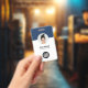 Personnalisez facilement ce badge personnalisé de nom d'employé minimaliste d'entreprise avec photo, code Qr de numérisation ou code barre de numérisation et logo d'entreprise. Un design d'entreprise simple avec photo ronde, en bleu marine et blanc entièrement personnalisable en tailles avant et arrière, sans-serif polices de base et moderne et un look professionnel et clair. Disponible avec cordon, clip métallique ou avec rétractable. Pas de commande minimum.