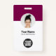 Personnalisez facilement ce badge personnalisé de nom d'employé minimaliste d'entreprise avec photo, code Qr de numérisation ou code barre de numérisation et logo d'entreprise. Un design d'entreprise simple avec photo ronde, en vin rouge cerisier bordeaux coloré et couleurs blanches entièrement personnalisable en tailles avant et arrière, sans-serif polices de base et moderne et un look professionnel et clair. Disponible avec cordon, clip métallique ou avec rétractable. Pas de commande minimum.
