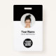 Personnalisez facilement ce badge personnalisé de nom d'employé minimaliste d'entreprise avec photo, code Qr de numérisation ou code barre de numérisation et logo d'entreprise. Un design d'entreprise simple avec photo ronde, dans des couleurs modernes noir et blanc entièrement personnalisable en tailles avant et arrière, sans-serif polices de base et moderne et un look professionnel et clair. Disponible avec cordon, clip métallique ou avec rétractable. Pas de commande minimum.
