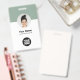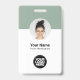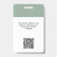 Personnalisez facilement ce badge personnalisé de nom d'employé minimaliste d'entreprise avec photo, code Qr de numérisation ou code barre de numérisation et logo d'entreprise. Un design d'entreprise simple avec photo ronde, dans des couleurs vert et blanc sage entièrement personnalisable en tailles avant et arrière, sans-serif polices de base et moderne et un look professionnel et clair. Disponible avec cordon, clip métallique ou avec rétractable. Pas de commande minimum.