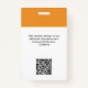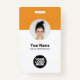 Personnalisez facilement ce badge personnalisé de nom d'employé minimaliste d'entreprise avec photo, code Qr de numérisation ou code barre de numérisation et logo d'entreprise. Un design d'entreprise simple avec photo ronde, dans des couleurs modernes tangerine orange et blanc entièrement personnalisable en tailles avant et arrière, sans-serif polices basiques et modernes et un look professionnel et clair. Disponible avec cordon, clip métallique ou avec rétractable. Pas de commande minimum.