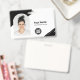 Personnalisez facilement ce badge nominatif personnalisé avec un design minimaliste d'entreprise horizontale personnalisable avec un trait de pinceau créatif abstrait, avec photo, scan de code QR ou scan de code-barres et logo d'entreprise. Un design d'entreprise simple avec une photo ronde, en noir et blanc, avec une forme de photo en arc, entièrement personnalisable en tailles avant et arrière, avec des polices basiques et modernes sans serif et un aspect professionnel et clair. Disponible avec un cordon, un clip métallique ou rétractable. Aucune commande minimum.