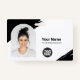 Personnalisez facilement ce minimaliste d'affaires horizontal personnalisé Employé abstrait brush course Nom Badge avec photo, Scan Qr Code ou Scan Bar Code et logo d'entreprise. Un design d'entreprise simple avec photo ronde, en noir et blanc, avec forme photo arc, entièrement personnalisable en tailles avant et arrière, sans-serif polices de base et moderne et un look professionnel et clair. Disponible avec cordon, clip métallique ou avec rétractable. Pas de commande minimum.