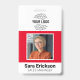 Carte d'identité moderne rouge badge employé d'entreprise, logo sur blanc.