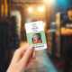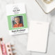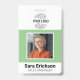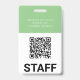 Carte d'identité moderne vert employé d'affaires QR badge, logo sur blanc.