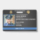 L'insigne de la police départementale personnalisable comporte un emblème de police en haut qui peut être personnalisé selon votre département ainsi qu'un emplacement pour le logo de l'État. Personnalisez avec la photo de l'agent sur la gauche. À côté de la photo, le nom de l'agent, le numéro d'insigne, le rang et le département sont affichés. Ajoutez votre propre code-barres au verso de la carte, ainsi que les dates d'émission et d'expiration, et la description de l'agent, du capitaine, du chef ou de l'employé de bureau.