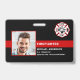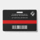 Identifiez-vous facilement ainsi que votre pompier à la caserne avec ce drapeau mince ligne rouge personnalisé avec photo, logo, code-barres, badges de carte d'identification de pompier. Personnalisez avec la photo du pompier, le nom, le numéro d'identification et le service d'incendie. Personnalisez le verso avec le logo de votre caserne de pompiers et le code-barres, ou toute autre information. Ce badge de carte d'identification de pompier à ligne rouge mince est parfait pour tous les pompiers, pompiers volontaires, pompiers, chefs, capitaines et lieutenants. COPYRIGHT © 2020 Judy Burrows, Black Dog Art - Tous droits réservés. Badge d'identification de pompier avec photo personnalisée du service d'incendie