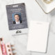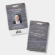 Une carte d'identité professionnelle moderne pour votre petite entreprise ou société. Le fond en grain de bois gris donne à ceci un aspect unique. Ajoutez la photo du personnel et votre propre logo. Look sophistiqué pour une marque haut de gamme.