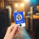 Badge Carte d'identité photo de l'employé bleu, code bar
