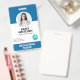 Insigne de carte d'identité photo de l'employé de l'hôpital moderne personnalisé. S'il vous plaît télécharger une photo carrée pour un ajustement parfait. Personnalisez facilement en remplaçant chaque info. Téléchargez votre propre code à barres ou code QR ou supprimez-le si vous n'en avez pas besoin.