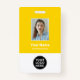 Personnalisez facilement ce badge de nom d'employé en or personnalisé avec une photo et un logo d'entreprise, customisez avec un code à barres sur le dos si nécessaire. Un design d'entreprise simple en or métallique et couleurs blanches, entièrement personnalisable en tailles avant et arrière, sans-serif polices de base et moderne, et un look professionnel et clair. Disponible avec une nacelle, un clip métallique ou un clip rétractable. Pas de commande minimum.