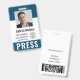 Personnalisez ces badges verticaux avec une photo et un nom d'employé, ainsi que trois champs de texte personnalisés pour le nom, le titre ou le rôle du média, le numéro d'identification ou les dates valides, avec le logo de la société de média. APPUYEZ sur le bas en caractères blancs gras pour faciliter l'identification. Customisez avec un code à barres sur le dos si nécessaire, avec des informations de retour ou d'autres détails.