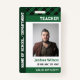 badge d'identité de l'enseignant vertical personnalisé avec photo, nom, numéro d'identification, département, et l'année où le badge est valide dans un design vert foncé avec un motif vert plaid comme un petit détail.