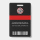 Identifiez-vous facilement ainsi que votre pompier à la caserne avec ce badge de carte d'identification de pompier personnalisé avec une fine ligne rouge comprenant une photo, un logo, un code-barres personnalisés. Personnalisez avec la photo du pompier, le nom, le numéro d'identification et le service d'incendie. Personnalisez le verso avec le logo de votre caserne de pompiers et le code-barres, ou toute autre information. Ce badge de carte d'identification de pompier avec une fine ligne rouge est parfait pour tous les pompiers, pompiers volontaires, chefs, capitaines et lieutenants. COPYRIGHT © 2020 Judy Burrows, Black Dog Art - Tous droits réservés. Badge de carte d'identification professionnel avec logo et photo personnalisés pour pompier.