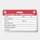 Badge Carte d'information Médicale d'urgence pour chien