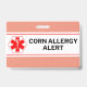 Badge Carte d'urgence d'alerte d'allergie au maïs
