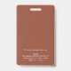 Ce badge vertical minimaliste en terre cuite peut être customisé avec des photos et des noms de vos employés. Vous pouvez également ajouter du texte supplémentaire pour le numéro d'identification de l'employé, le titre, l'emplacement et plus encore. Votre logo peut être inséré en haut de la conception. Personnalisez ces badges verticaux avec une photo et un nom d'employé, ainsi que 2 lignes de texte supplémentaires pour le numéro d'identification d'employé, le titre ou le rôle, l'emplacement ou d'autres données importantes. Ajoutez votre logo en haut. L'arrière du badge contient vos coordonnées et les instructions de retour si elles sont trouvées. C'est un design bohème chic qui conviendra à toute entreprise.