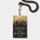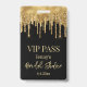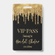 style carte vip, mariage noir or paillettes qui coulent Badge