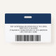 Cartes d'identification de code-barres personnalisées avec logo et photo Créez un badge de nom d'employé personnalisé avec une photo personnalisée, un code-barres scannable et le logo de l'entreprise. Ce design élégant et professionnel, disponible en bleu marine et blanc, est entièrement personnalisable de part et d'autre. Choisissez parmi une variété de polices sans-serif modernes pour un aspect propre et contemporain. Le badge est disponible avec des options pour un cordon, un clip métallique ou une bobine rétractable. De plus, il n'y a pas d'exigence minimale de commande