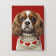 Un adorable Cavalier Spaniel, dans un pull pour chien tricoté en laine avec des cœurs d'amour.