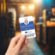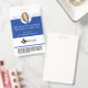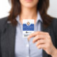 Badge d'identification vertical professionnel et moderne avec photo en cercle bleu. Personnalisez avec votre photo, nom, titre, numéro d'identité, nom du lieu, logo et code-barres facultatif. L'élément de design peut être changé en n'importe quelle couleur pour s'adapter à votre marque, cliquez simplement sur personnaliser et cliquez pour personnaliser davantage. Le verso présente le lieu/l'adresse.