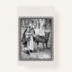 Ce nom ou badge d'identification est blanc avec une illustration en noir et blanc d'un petit capot rouge dans les bois qui parle au loup dans un cadre noir fantaisiste. Customisez votre nom et vos informations aux modèles.