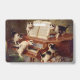 Insigne représentant la peinture à l’huile de Carl Reichert Le considérant des chatons (1836-1918). Cinq adorables chatons noirs et blancs sont assis au sommet d'un piano. Un cadeau fantastique pour les amoureux de les chats et les amateurs d'art victorien.