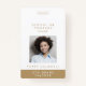 Cette photo en or chic badge d'identification de petite entreprise ou d'enseignant fait l'étiquette d'identification de l'employé parfait! Le design simple présente une typographie classique minimaliste d'or et de blanc, dans un style boho rustique. Personnalisable dans n'importe quelle couleur. Personnalisez avec votre nom d'entreprise, une photo d'employé, nom, titre ou département, code QR, numéro d'identification d'employé et plus encore!