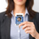 Un design d'entreprise de base qui met en évidence les logos de votre bureau et le nom de votre employé. Vous pouvez ajouter un code à barres d'analyse à l'avant et à l'arrière. Vous pouvez également modifier la couleur de l'arrière - plan.