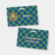 Clan Douglas crête badge entouré d'une sangle et boucle sur l'arrière - plan tartan. Texte personnalisé des deux côtés.