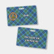 Clan Keith badge de crête entouré d'une sangle et boucle sur l'arrière - plan tartan. Texte personnalisé des deux côtés.