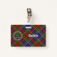 Clan MacBeth badge de crête entouré d'une sangle et boucle sur l'arrière - plan tartan. Texte personnalisé des deux côtés.