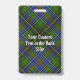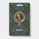 Clan MacInnes crête badge entouré d'une sangle et boucle sur l'arrière - plan tartan. Texte personnalisé.
