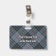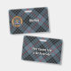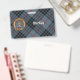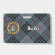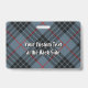 Clan MacKay crête badge entouré d'une sangle et boucle sur l'arrière - plan tartan bleu. Texte personnalisé des deux côtés.