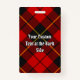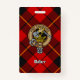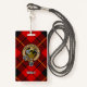 Clan Wallace crête badge entouré d'une sangle et boucle sur l'arrière - plan tartan. Texte personnalisé.