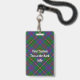 Clan Wood badge crête entouré d'une courroie et boucle sur l'arrière - plan tartan. Texte personnalisé.