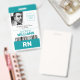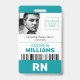 Infirmière autorisée professionnelle et simple badge vertical RN avec logo personnalisé, conçu en combinaison turquoise, blanche et noire. Sur le devant, vous trouverez une photo personnalisée et le logo de l'hôpital, avec le nom et l'emplacement de l'hôpital, le nom de la personne, le code à barres et le RN, tous peuvent être changés et customisés. Pour une personnalisation supplémentaire, veuillez contacter le concepteur. *Crédit photo : ©campb_LLs