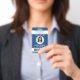 Représenter votre entreprise avec style en fournissant au personnel des badges d'identification modernes et professionnels. Le logo, la photo, le code à barres et tous les termes de ce modèle sont faciles à customiser. Le design bleu et blanc présente le logo de votre entreprise, une image ronde, le nom et le titre de l'employé, et votre UPC / code barre. Il peut fournir l'organisation et la sécurité du personnel de l'entreprise, tout en présentant la marque de l'entreprise avec un aspect classique élégant.